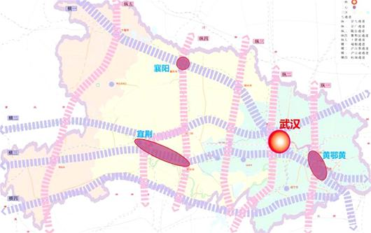 区域性和地区性综合交通枢纽:襄阳、宜昌、十堰、荆州、黄冈、鄂州、黄石、恩施、荆门、随州、孝感、咸宁、仙潜天。