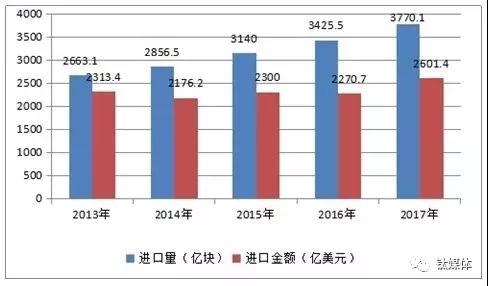 中国是世界上最大的集成电路市场,占全球份额一半以上。根据中国半导体行业协会统计,2017 年中国集成电路产业销售额达到5411.3 亿元,同比增长24.8%。但这一全球最大的集成电路市场,主要的产品却严重依赖进口。2013 年以来,中国每年需要进口超过2000 亿美元的芯片,而且连续多年位居单品进口第一位,2017 年更达到历史新高:2601亿美元。