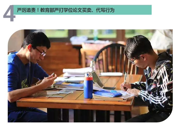 为进一步规范学位论文管理,加强学术诚信建设,教育部近日发出通知,要求严厉打击学位论文买卖、代写行为,明确指导教师是查处学位论文买卖、代写行为的第一责任人,要加强对学生学术道德、学术规范的教育,加强对学位论文研究及撰写过程的指导,并对学位论文是否由其独立完成进行审查,确保原创性。通知指出,对履职不力、所指导学生的学位论文存在买卖、代写情形的指导教师,要追究其失职责任。对参与购买、代写学位论文的学生,给予开除学籍处分。已获得学历证书、学位证书的,依法予以撤销。被撤销的学历证书、学位证书已注册的,应当予以注销并报教育行政部门宣布无效。
