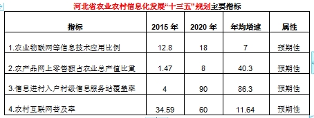 农业农村信息化是现代农业的重要内容,是农业现代化的重要标志。为贯彻落实农业部《“十三五”全国农业农村信息化发展规划》《河北省人民政府关于推进“互联网+”行动的实施意见》精神,加速推进全省农业农村信息化发展,制定本规划。